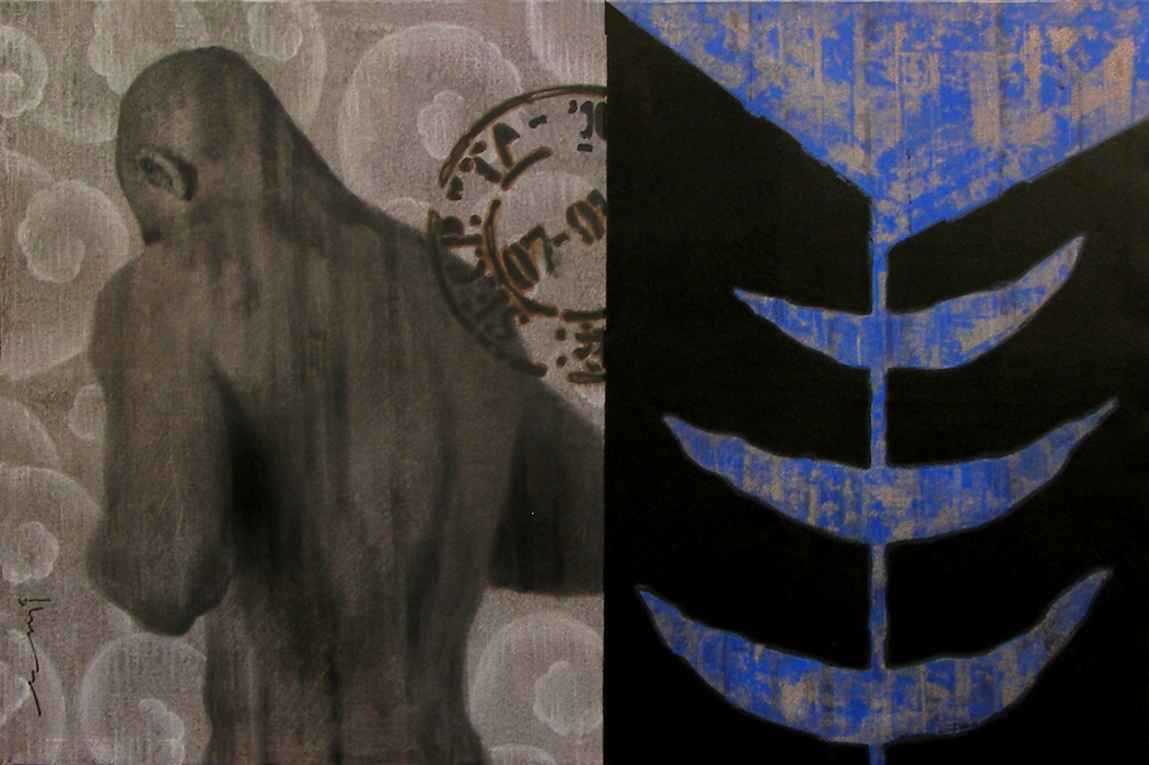 “My work is a struggle to discover our individual differences. Yet, there is an attempt to categorise man, to stamp him with an identity and and limit the understanding of his complex persona,” says 36-year-old. His men appear shorn and shadowy, marked with a rubber stamp seal –a metaphor for the approval of society. “There are many aspect of a man that make him divine. Yet he is human and vulnerable,” say Dharmadhikari who studiedare at Dalvi’s Art Institute in Kolhapur.